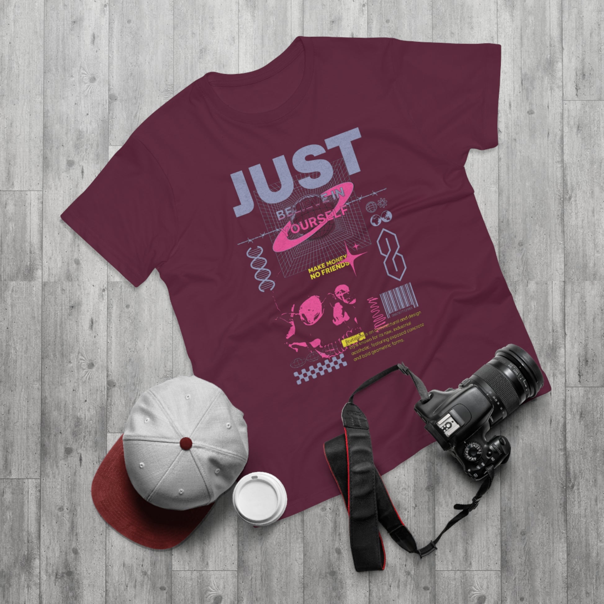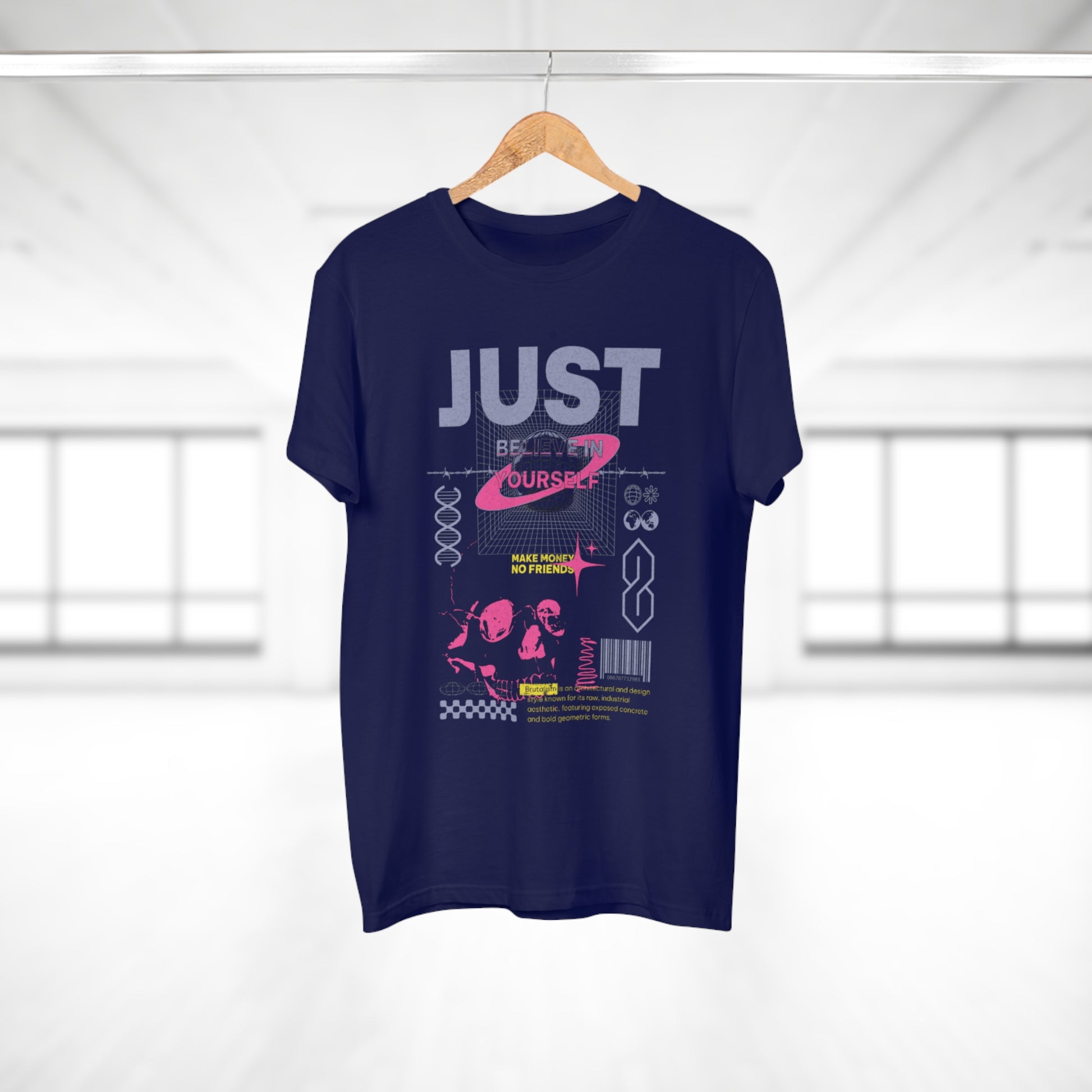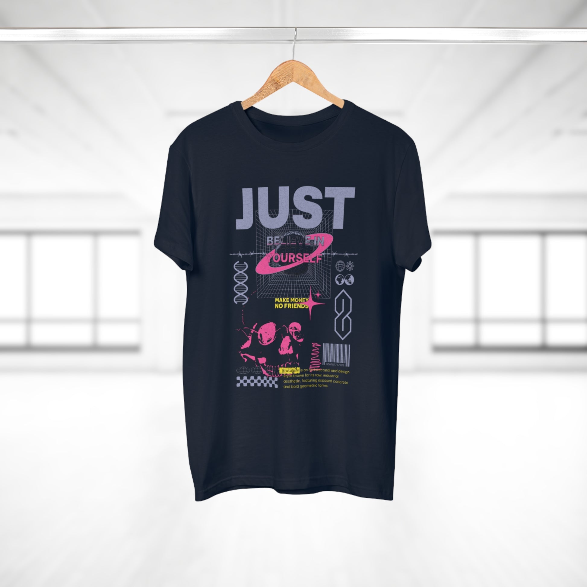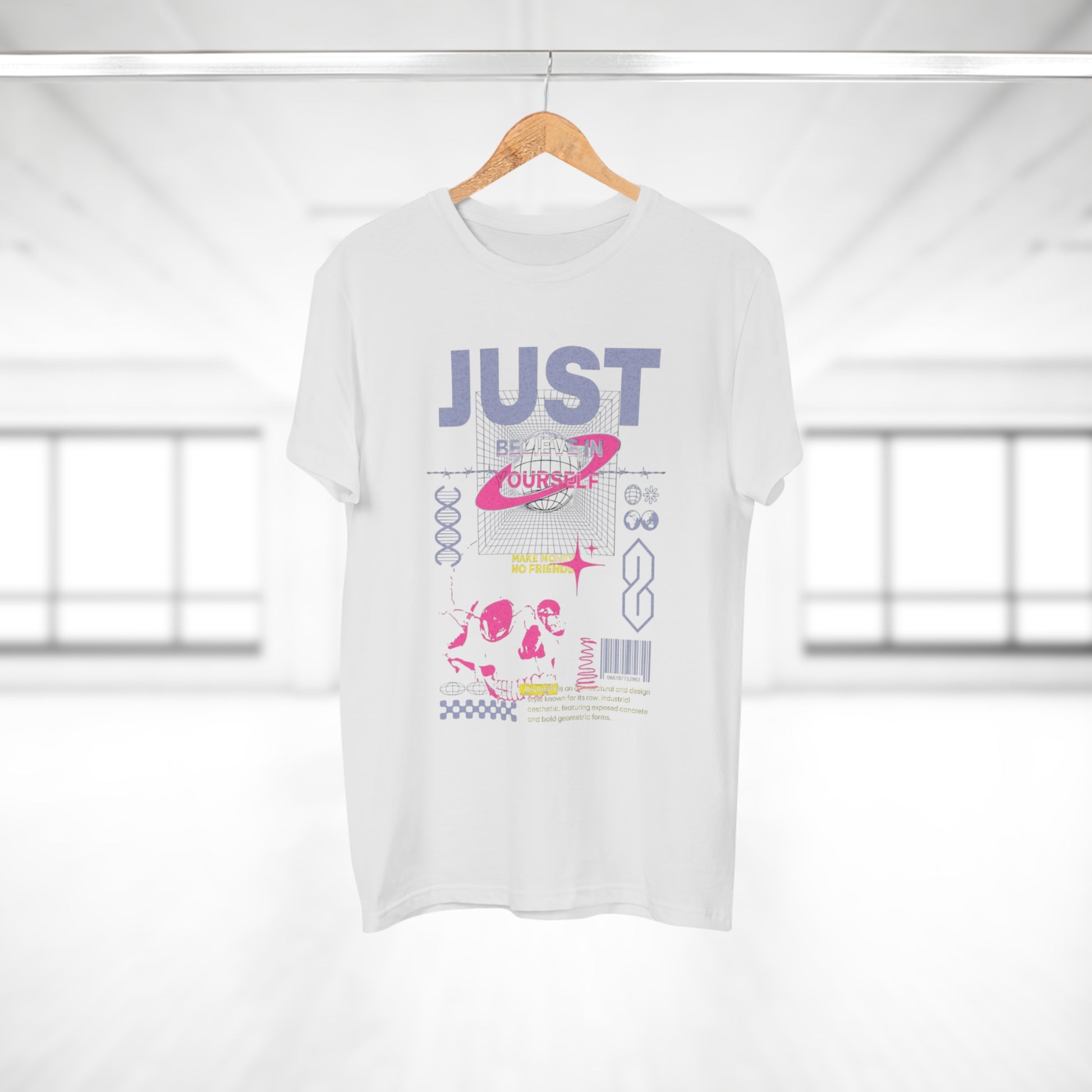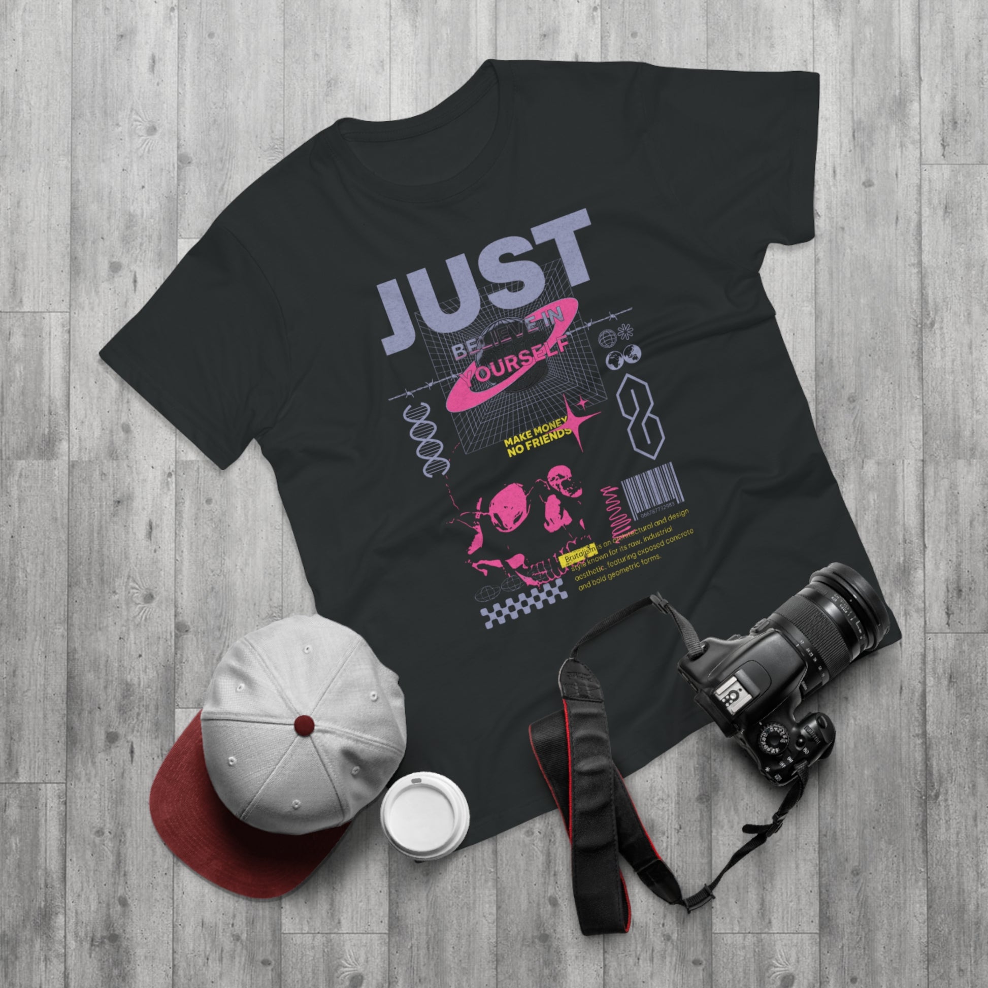 A soft, lightweight tee that wears like a calm declaration. Pale inks and faded graphics—saturn-like rings, a pink skull, and glitchy barcode motifs—give the shirt a quietly rebellious, vaporwave edge. The colors feel sun-faded and nostalgic; the fit is relaxed enough to layer or wear on its own. Slip it on and you’ll feel like you’ve stepped into a late-night playlist: introspective, a little cheeky, and unmistakably yours. It pairs with worn denim, canvas sneakers, and a lo-fi soundtrack for days when you want to be seen but not shouted at.