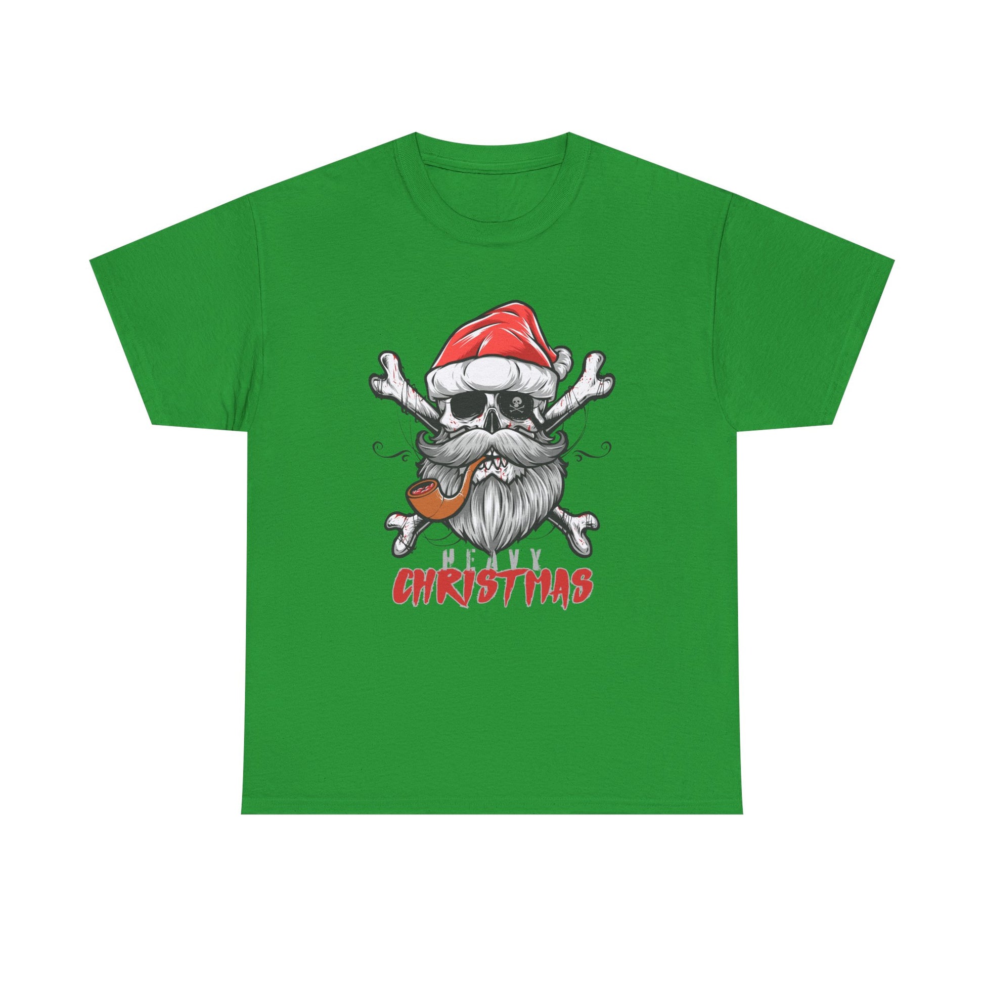 This soft, medium-weight tee carries a bold punk-holiday vibe: a skull with a Santa hat, pipe and crossed bones rendered in detailed, hand-drawn style with the word “Christmas” below. It sits on a classic crew neck cut that feels familiar and relaxed. Wear it layered under a denim jacket or alone as a statement piece at casual gatherings. The print’s crisp lines and shaded textures hold up wash after wash, and the natural white ground lets the reds and greys pop. It’s for someone who prefers holiday humor with an edge — cheeky, irreverent, and a little rough around the edges.
